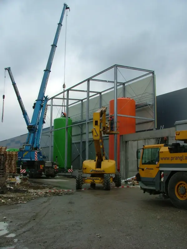 In unserem Unternehmen sind 15 Mitarbeiter für Ihre Wünsche da – 9 Facharbeiter, 3 Lehrlinge und 3 Büroangestellte. Auf unserem Betriebsgelände mit 2800 Quadratmetern fertigen wir auf 980 Quadratmetern Produktionshalle mit 3 Kränen (für 3,5 Tonnen) Konstruktionen aus Alu, Stahl und Niro.